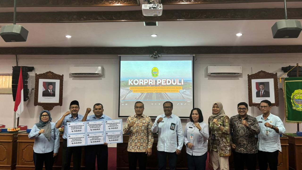 Sebagai wujud kepedulian KORPRI Kabupaten Bantul, telah diserahkan donasi senilai 408 juta rupiah kepada BPBD Kabupaten Bantul untuk selanjutnya diserahkan kepada 6 Kabupaten Kota terdampak banjir di Pulau Sumatera.