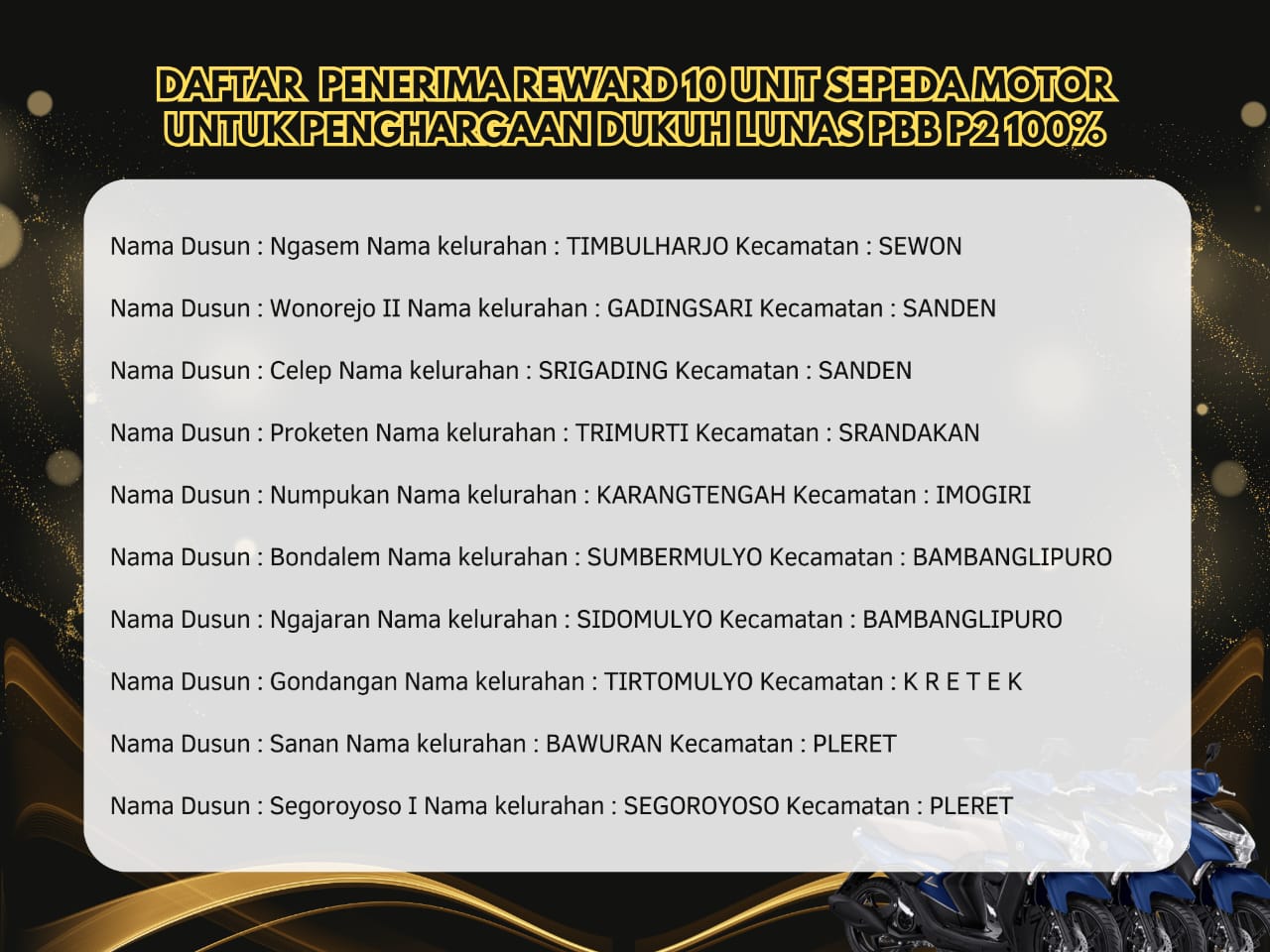 Daftar Penerima Reward untuk Dukuh Lunas PBB P2 100%